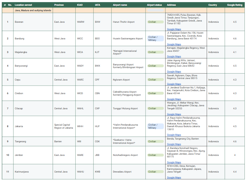• Compiled 184 airports across 7 regions in Indonesia.